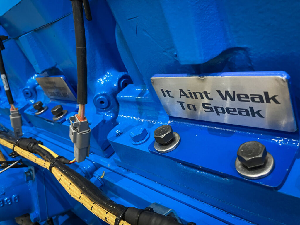 Built by Madison Callaway, Alkira Lazaro and Danica Thomas—graduates of EDL’s Women in Trades Program—the blue engine isn’t just symbolic, it’s a serious piece of equipment. With 1149kilowatts (1541break horsepower) of energy, twin turbos running at 33PSI, and the capacity to power 638 homes, it’s built to perform.